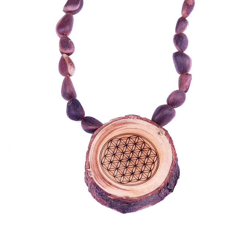 Ciondolo di legno di Cedro, Il Fiore della Vita sulla collanina di semi secchi di Cedro!